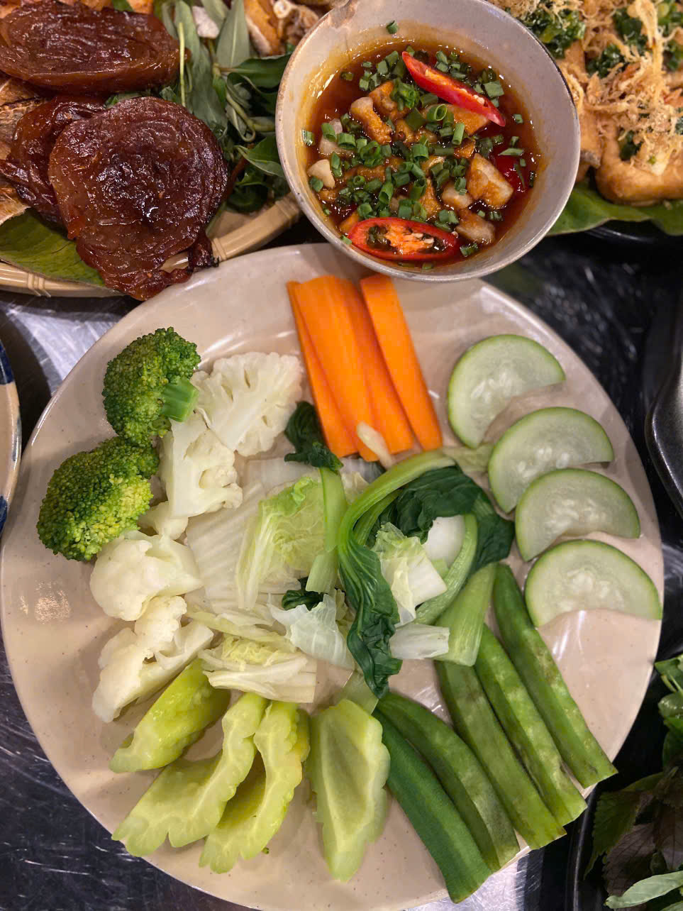Rau củ luộc kho quẹt